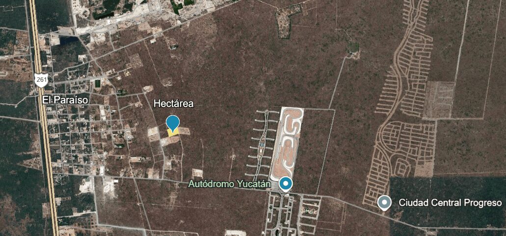 Hectárea con título de propiedad ubicada en la localidad de Paraíso perteneciente al municipio de Progreso, a 5 minutos del Autódromo Yucatán y a 2.2 km de la carretera Mérida-Progreso. Acceso por el minisúper OXPE/Six con calle pavimentada.